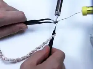 Подключите электрический паяльник и установите температуру припоя на значения, подходящие для температур плавления как припойной проволоки, так и замка-карабина.