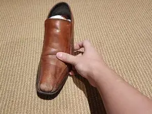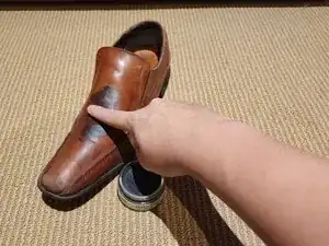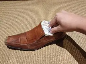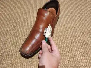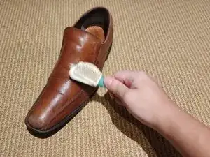 Смягчённой щёткой или влажной тканью тщательно очистите поверхность обуви, удаляя грязь и пыль.
