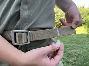 Используйте мел или ручку с термоистираемым чернилами, чтобы отметить новый конец ремня.