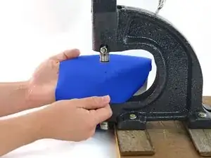 Разместите ткань в ручном прессе так, чтобы отметка находилась непосредственно над стержнем шпильки.