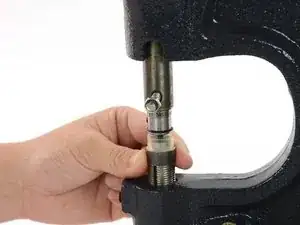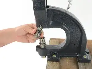 Вставьте оправку для шляпки в верхний держатель оправок на ручном прессе.