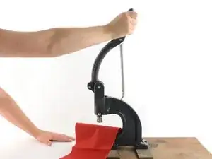 С выровненной тканью опустите рукоять ручного пресса одним непрерывным движением.