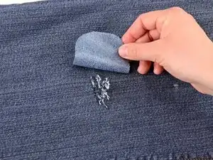 Если кусочек плотно приклеен к нашивке, просто обрежьте ножницами лишнюю ткань в месте приклеивания, оставив остаток на месте.