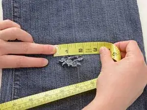 Измерьте длину и ширину дыры в джинсах, включая поврежденную область вокруг нее.