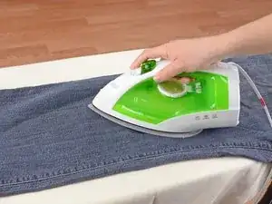 Приклейте нашивку утюгом согласно инструкциям на упаковке, обычно 30–45 секунд. Держите утюг в движении и старайтесь равномерно прогревать всю нашивку.