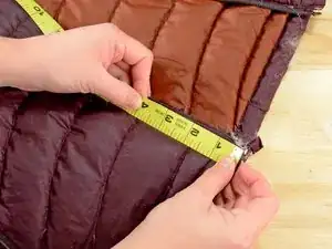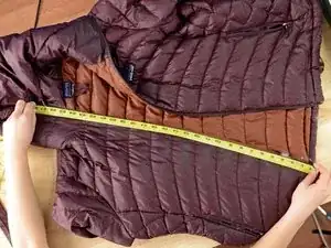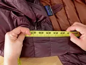 Разложите куртку и измерьте от основания молнии до воротника вдоль шва, который Вы только что удалили. В нашем случае измерение составило 27 дюймов.