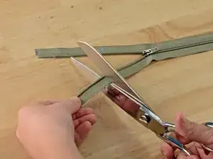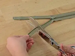 Используйте кусачки для обрезки концов, чтобы удалить зубья молнии между двумя отметками.