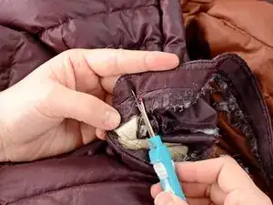 Молния теперь должна быть освобождена от куртки и может быть выброшена.