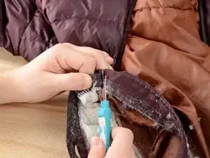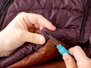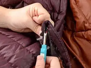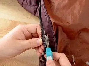 Используя распарыватель швов, аккуратно удалите стежки внутри молнии.
