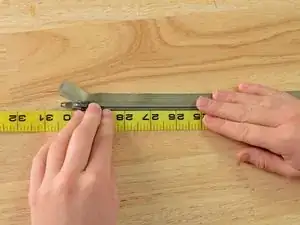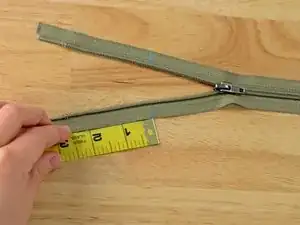Разложите новую молнию на ровной поверхности и используйте измерение, записанное на предыдущем шаге, начиная от коробочки молнии или от низа молнии.