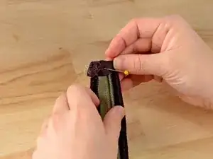 Отогните зубья молнии от ленты молнии, чтобы было проще добраться до стежков, соединяющих молнию и ленту.