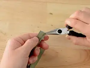 Используйте плоскогубцы с тонкими носами, чтобы удалить все оставшиеся обломки зубьев с молнии.