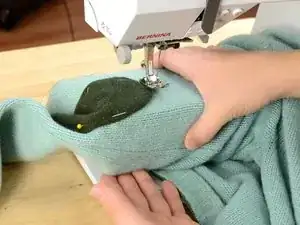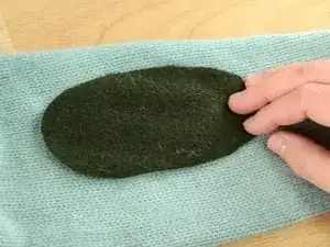 Важно выбрать ткань, лишь немного плотнее, чем Ваш свитер, например вельвет или свитерная ткань после валяния. Всё, что плотнее, например джинсовая или кожаная ткань, может привести к разрыву свитера.