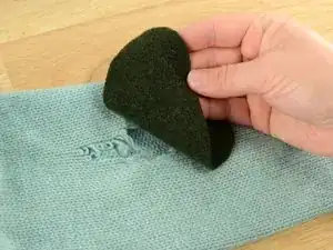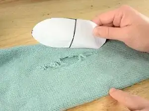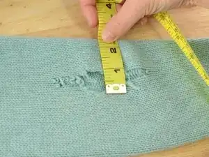 Разложите свитер на рабочей поверхности лицевой стороной вверх, чтобы было видно повреждение.