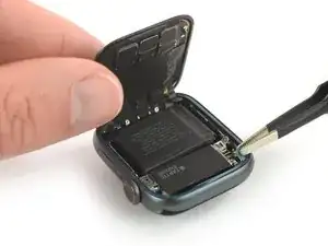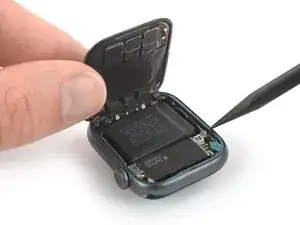 Для сборки Apple Watch Series 4 выполните эти инструкции в обратном порядке, чтобы заново подключить аккумулятор.