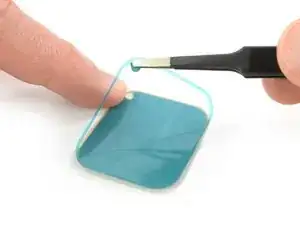 Используйте пинцет, чтобы аккуратно снять заменяющий клей с синей защитной плёнкой с подложки.