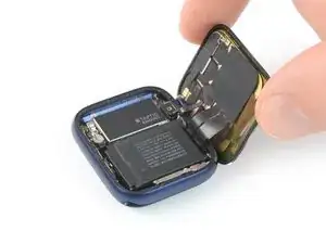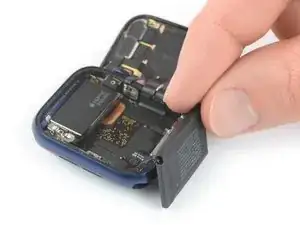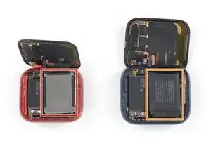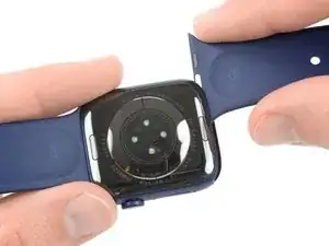 Следующие четыре шага показывают, как извлечь батарею из Apple Watch Series 6 диаметром 44 мм.