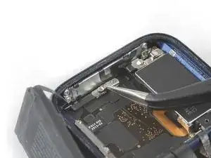 С помощью пинцета снимите металлический экран, закрывающий разъём батареи.