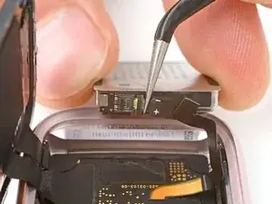 Пинцетом аккуратно вытяните кабель батареи прямо из его разъёма.