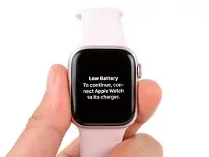 Перед началом ремонта снимите часы с зарядного устройства и полностью разрядите их аккумулятор — часы должны выключиться из‑за низкого заряда. Заряженный литий‑ионный аккумулятор может загореться при повреждении.