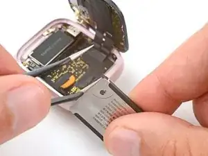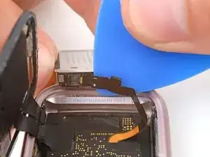 iFlex не нужно вставлять глубоко, так как он может легко повредить кабели экрана в правом нижнем углу часов.