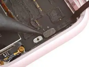 Используйте трёхгранную отвертку Y000, чтобы выкрутить винт длиной 1.1 мм, фиксирующий крепление разъёма батареи.
