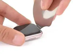 Не вставляйте медиатор глубже, чем на 3 мм под экран при отделении клея, иначе вы рискуете повредить внутренние компоненты часов.