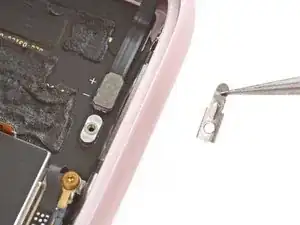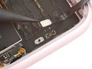 С помощью пинцета снимите крепление разъёма батареи.
