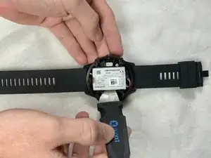 Снимите пять чёрных винтов длиной 6 мм по периметру лицевой части часов, используя отвертку Torx T5.