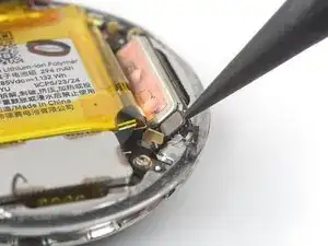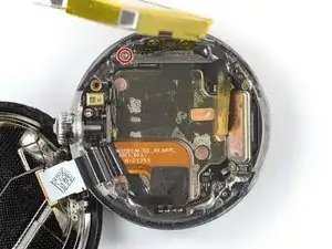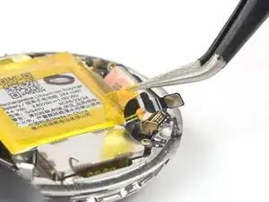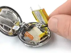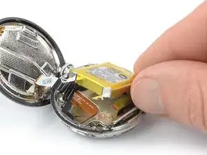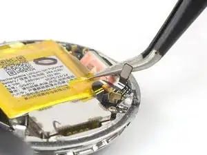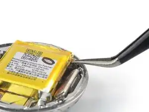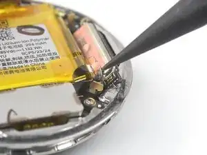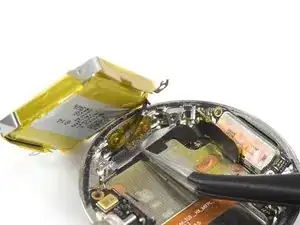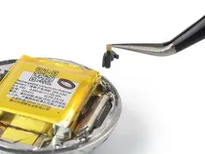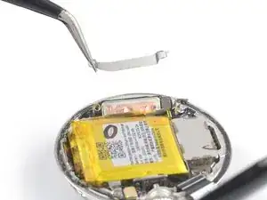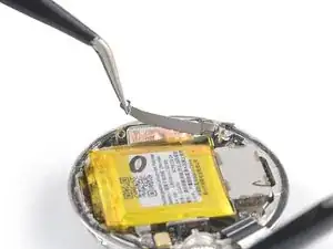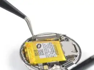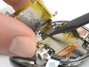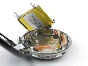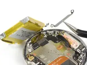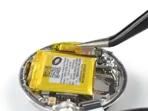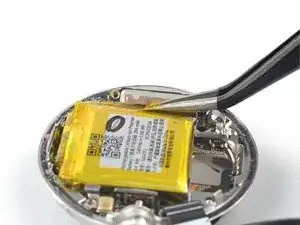 Батарея зафиксирована слабым клеем. Если снимать батарею трудно, приложите нагретый iOpener к нижней части часов примерно на 2 минуты, чтобы ослабить клей. Не прикладывайте iOpener прямо к батарее.