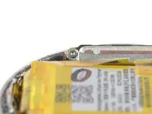 Используйте отвертку Torx T2, чтобы вынуть два винта длиной 3 мм, фиксирующие кронштейн аккумулятора.