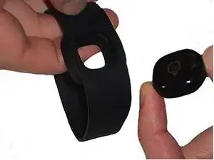 Используя указательный палец, осторожно выдавите модуль трекера из ремешка. Удобнее делать это над столом или другой поверхностью, чтобы модуль не упал на пол и не повредился.