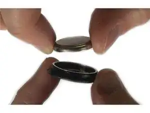Поместите новый аккумулятор в модуль трекера. Убедитесь, что положительная сторона аккумулятора направлена вниз в углублении модуля.
