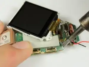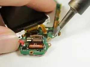 Чтобы снять аккумулятор, выпаяйте чёрный и красный провода, соединяющие аккумулятор с материнской платой, и извлеките аккумулятор. Для дополнительной помощи см. руководство Как паять и выпаивать соединения.