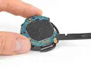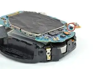 Положите часы на стол и приподнимите заднюю крышку, чтобы получить доступ к разъёму сенсора на материнской плате.