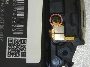 При закреплении ленточного кабеля аккумулятора убедитесь, что отверстие, через которое проходит штифт, круглое. Отверстие на кабеле вашего запасного аккумулятора может быть деформировано. Вещательно его увеличить перед закреплением.