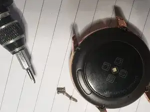 Поверните часы экраном вниз, чтобы открыть доступ к винтам. Удалите ремешки, нажав на переключатели штифтов.