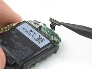 С помощью лопатки отсоедините кабель сенсорного узла, поддев разъём прямо вверх из его гнезда.