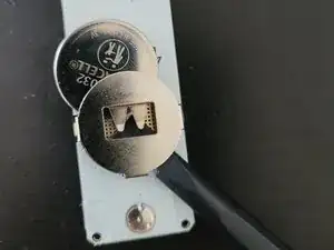 Используйте маленькую отвертку, ручку или инструмент iFixit и нажмите с нижней стороны аккумуляторного отсека, чтобы выдвинуть старый аккумулятор вверх и вынуть его.