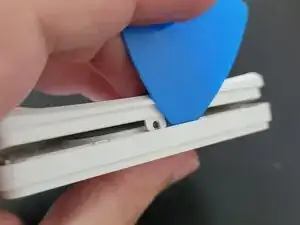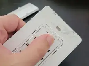 Используя либо инструмент iFixit, либо ноготь, осторожно оттяните одну сторону переключателя от центра. Лицевая сторона переключателя должна отрываться от своей петли.