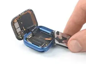 Следующие шесть шагов показывают, как извлечь аккумулятор из 45 мм Apple Watch Series 7.