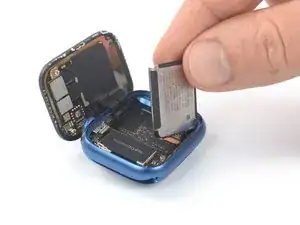 Следующие шесть шагов показывают, как извлечь аккумулятор из 41 мм Apple Watch Series 7.