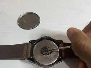 Аккуратно удалите старую батарею часов с помощью лопатки.