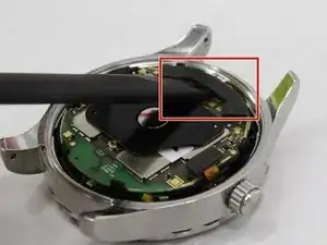 Захватите пинцетом выемки на задней крышке, затем открутите заднюю крышку (против часовой стрелки) от корпуса часов.