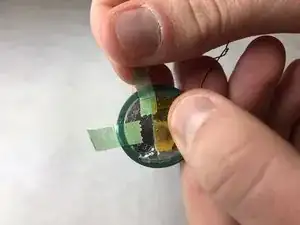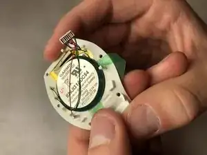 Удалите зеленую ленту с задней стороны батареи, она может быть повторно использована позже.