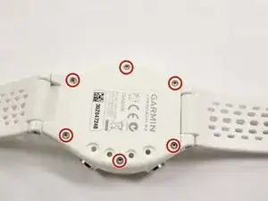 Удалите шесть винтов T5 Torx 6.32mm, фиксирующих заднюю крышку к часам.