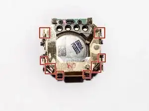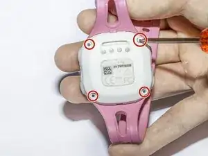Используйте отвертку Torx 5 для удаления всех четырёх винтов диаметром 1,1 мм на задней панели часов.