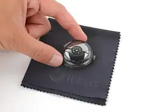 На протяжении всего оставшегося ремонта рекомендуется положить часы на что-то мягкое, например, чистую ткань, чтобы стабилизировать их и избежать царапин на переднем стекле.