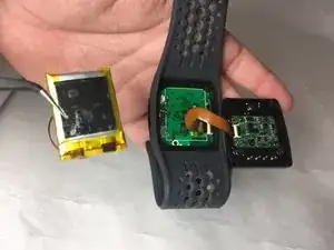 Медленно оторвите батарею от задней крышки часов.