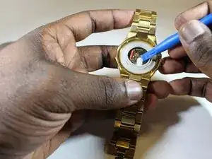 Снимите заднюю крышку часов с помощью инструмента для открытия.